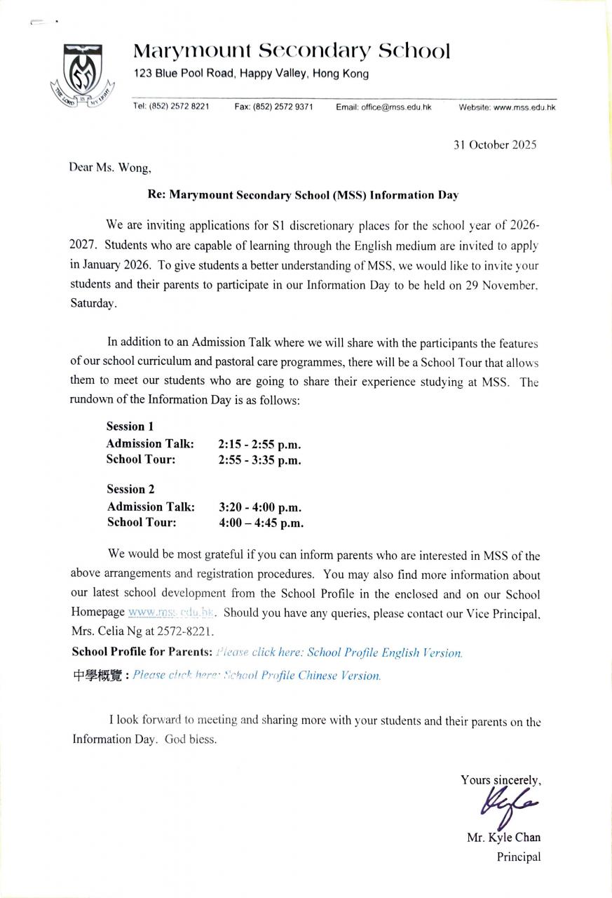 2025-2026 年度入讀本校二至五年級插班生通告