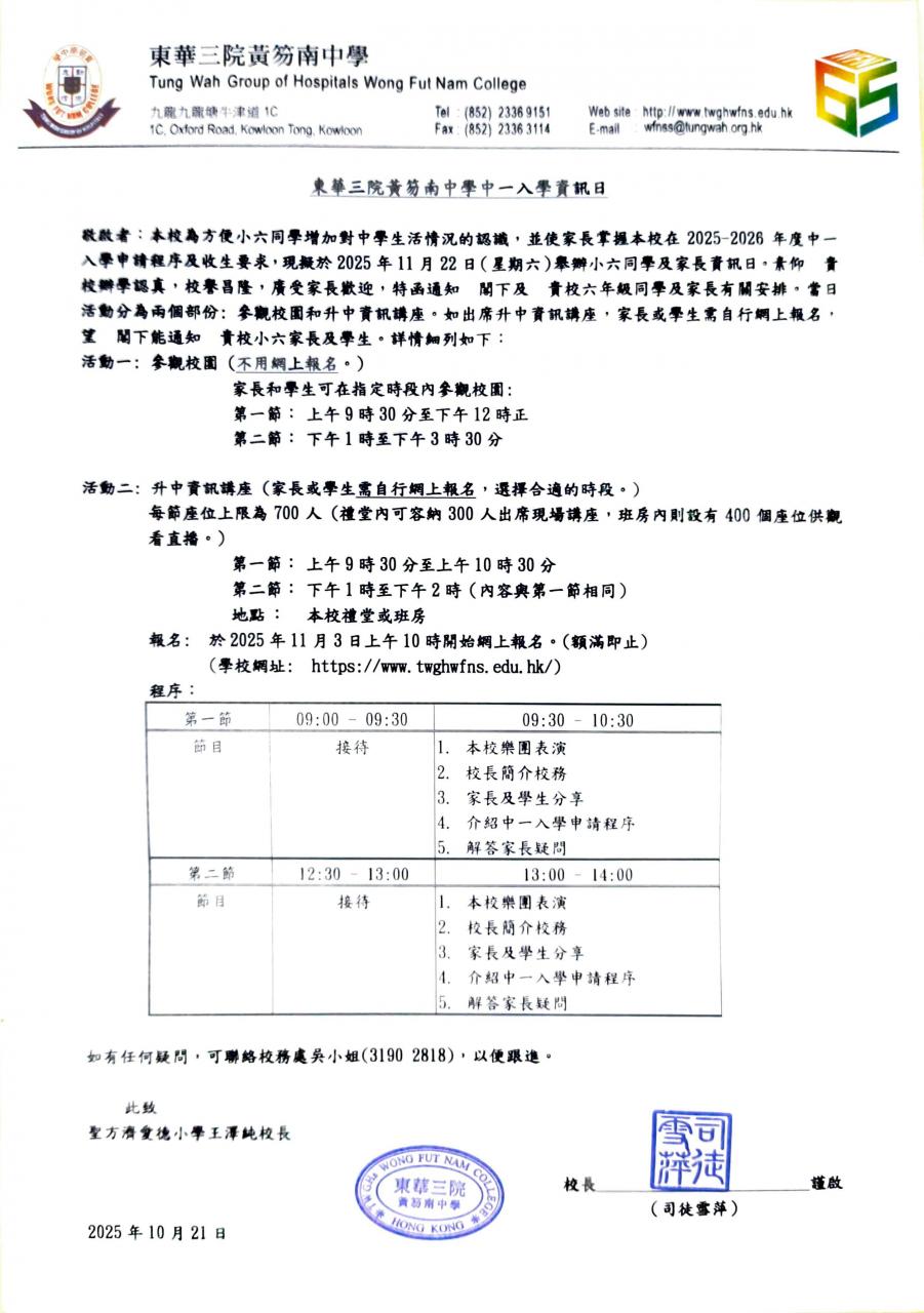 2025-2026 年度入讀本校二至五年級插班生通告
