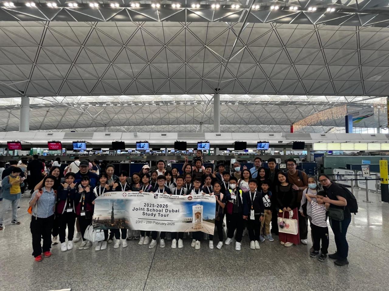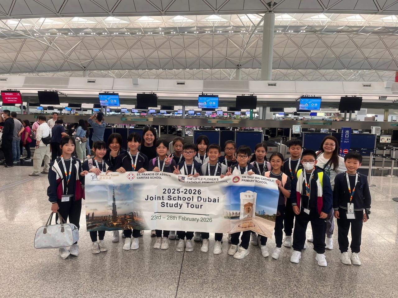 Our students and parents, along with those from The Little Flower’s Catholic Primary School and Tin Shui Wai Catholic Primary School, have successfully arrived at the airport to begin our joint educational tour to Dubai.