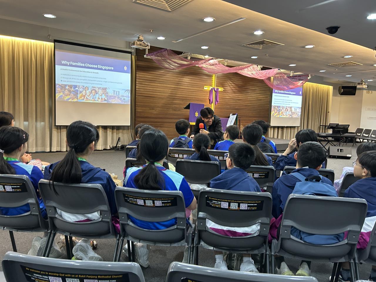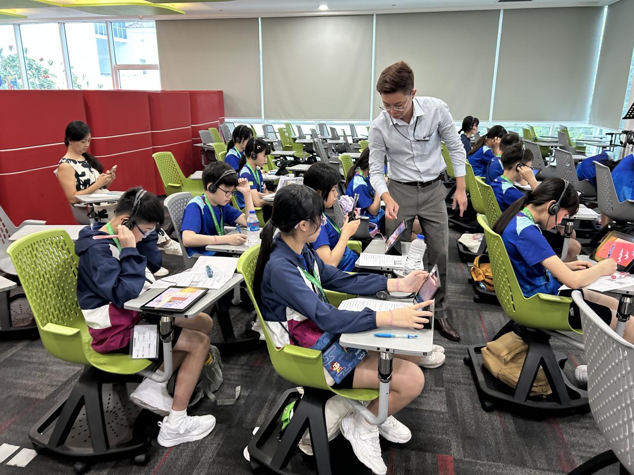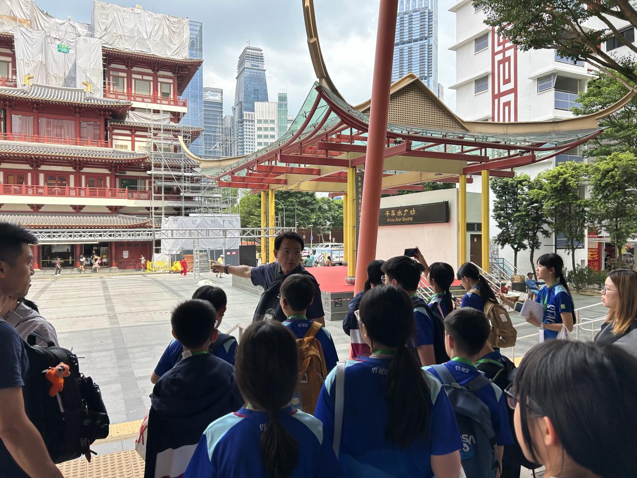 In the afternoon, students visited Chinatown. One of their tasks was to interview local Singaporeans to learn about their local life. They asked shopkeepers and residents questions, recording thoughtful answers for their projects. Afterward, they wandered the streets, comparing traditional crafts and trying local snacks. Many students bought souvenirs like keychains, snacks, and small keepsakes to remember the trip. The visit brought their lessons to life.