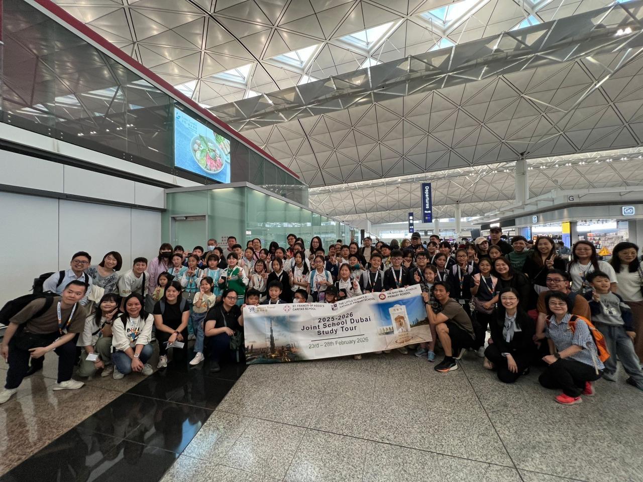 Our students and parents, along with those from The Little Flower’s Catholic Primary School and Tin Shui Wai Catholic Primary School, have successfully arrived at the airport to begin our joint educational tour to Dubai.